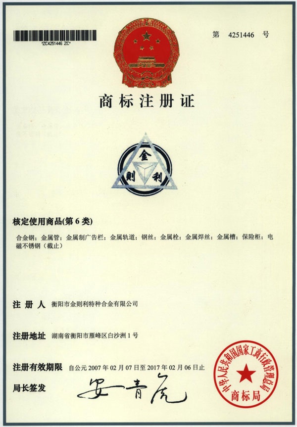 衡陽市金則利特種合金股份有限公司成立于一九九九年十二月,注冊資本人民幣兩千兩百萬元。注冊地址:衡陽市雁峰區白沙洲工業園長塘路2號。公司主營耐蝕軟磁合金,為湖南省高新技術企業。公司自成立以來,即致力于耐蝕軟磁合金的研發。 研制出的JL-31(00Cr13si2Pb)、JL-31B(00Cr13si2)、JL-31BS(00Cr13Si2S)、JL-37B(0Cr17Si2)、JL-37(0Cr17···